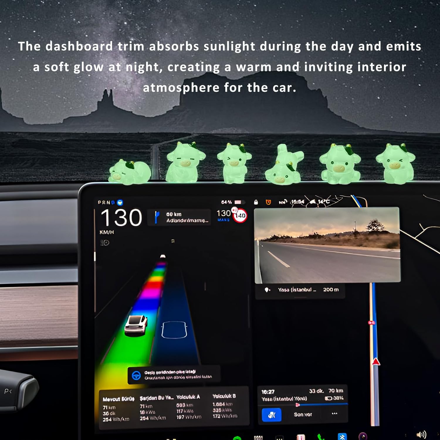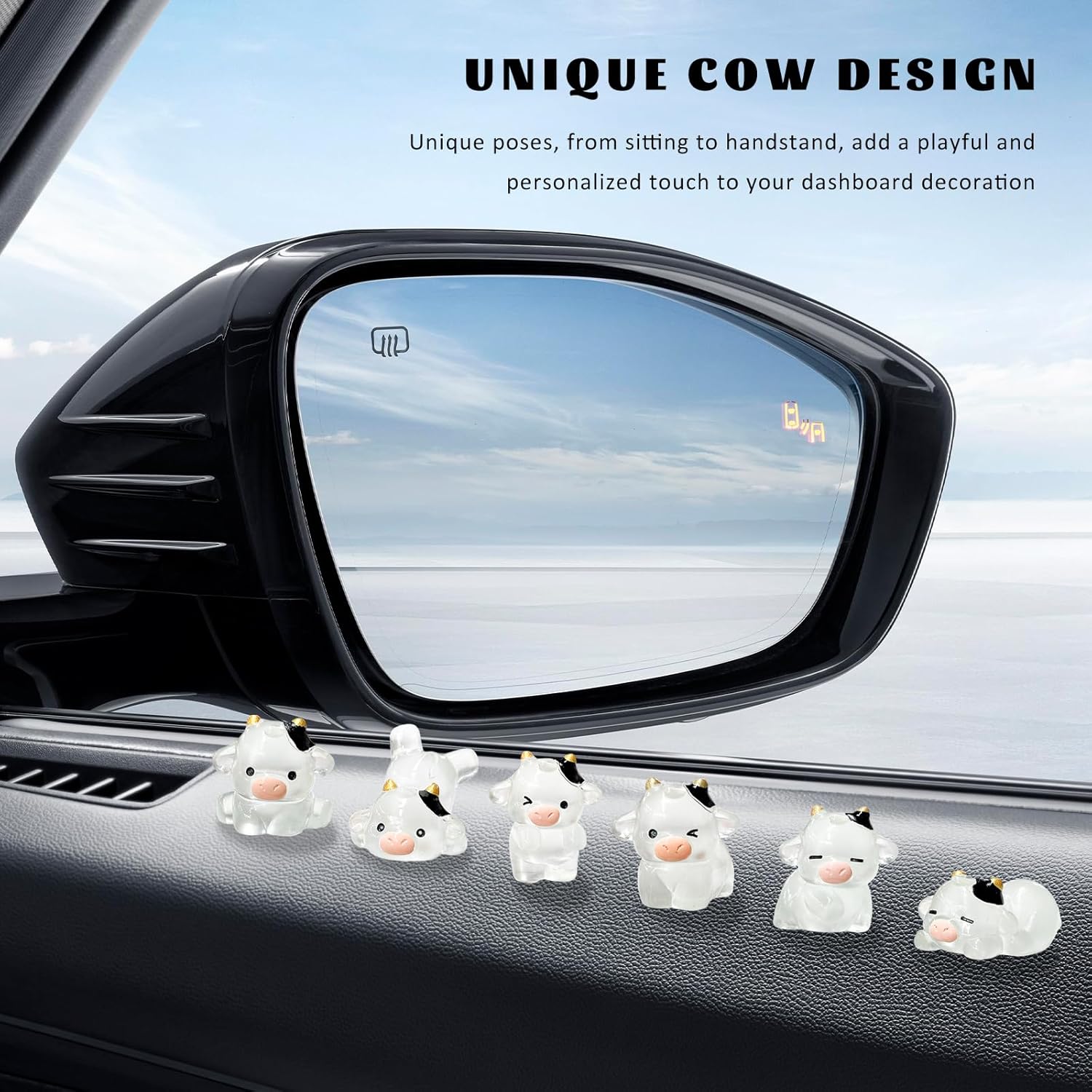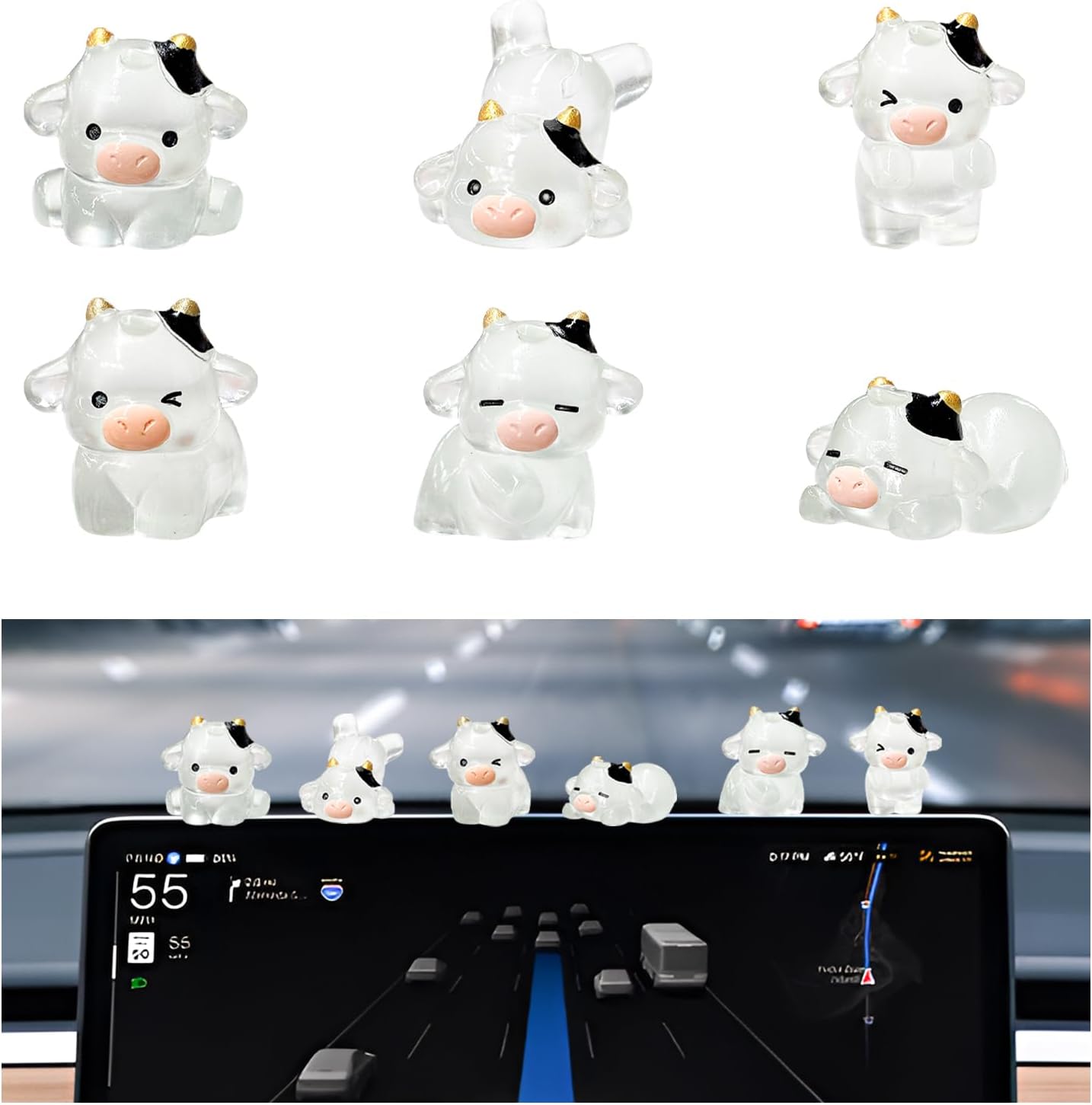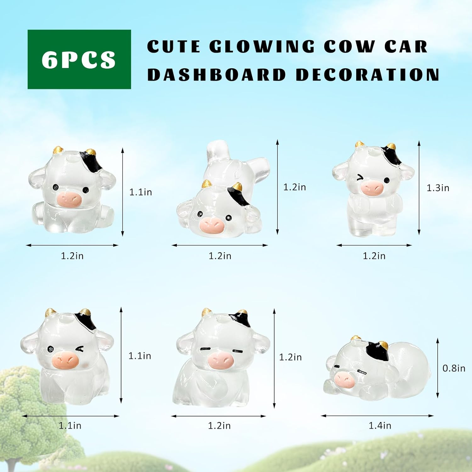 6 PCS Cute Luminous Cow Dashboard Decoration, Adorable Glow in The Dark Cows Car Dashboard Decor Set, Mini Resin Luminous Cows Center Console Ornaments for Women Men
