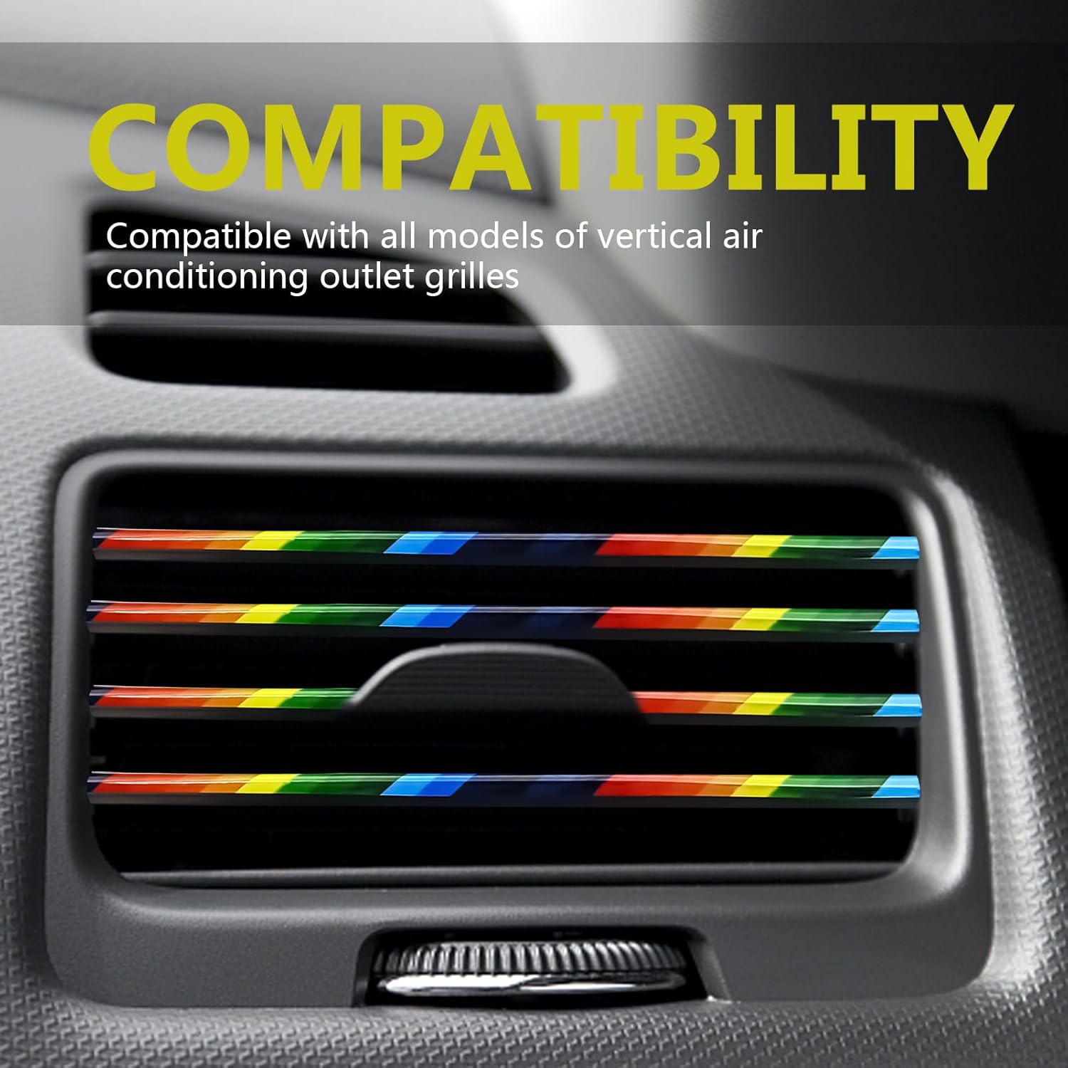 Automotive 20PCS Universal Car Air Conditioner Vent Trim Decoration Strip Bendable Vent Outlet Trim for Most Cars SUVs and Trucks with Straight Grilles, Rainbow