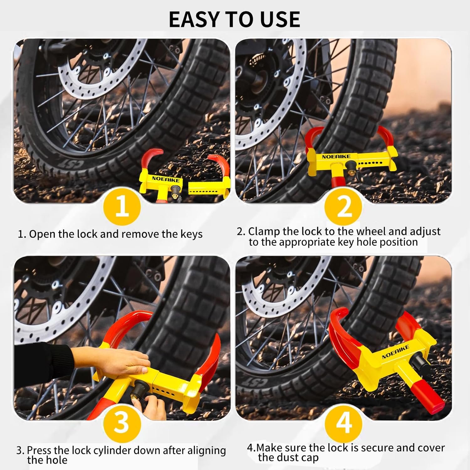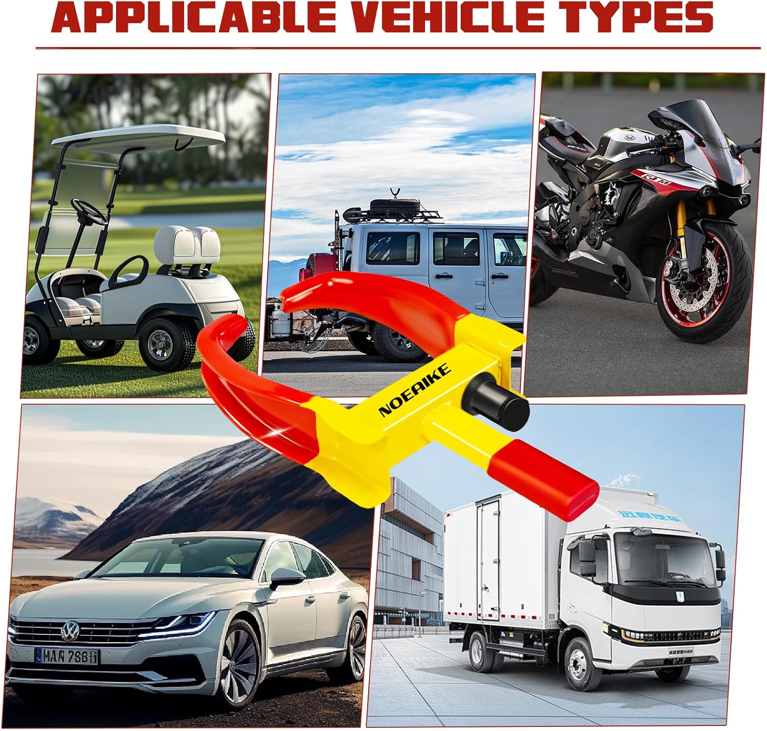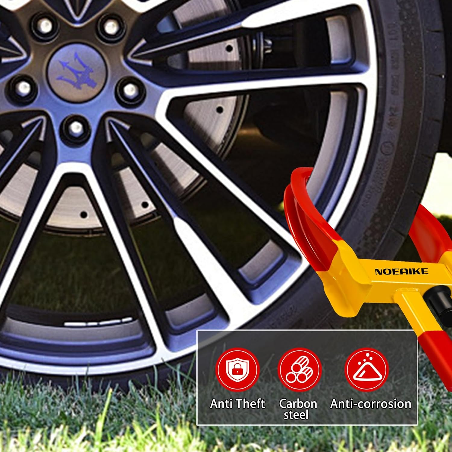 - 【High-Visibility Color】: The bright red-yellow surface of the lock serves as a visible deterrent to would-be thieves.Its eye-catching design is intended to draw attention and signal to potential intruders that your vehicle is protected,reducing the likelihood of theft attempts.